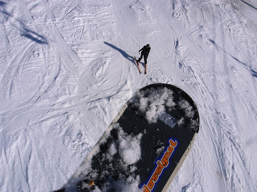 這次滑雪的照片佳作 -- 螳臂擋車 (別想不開呀,小姐)