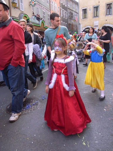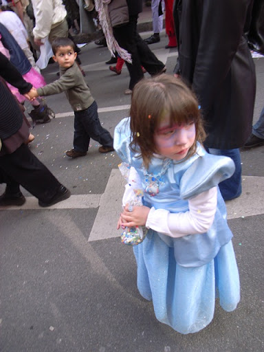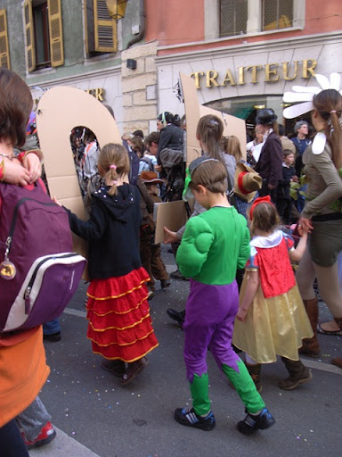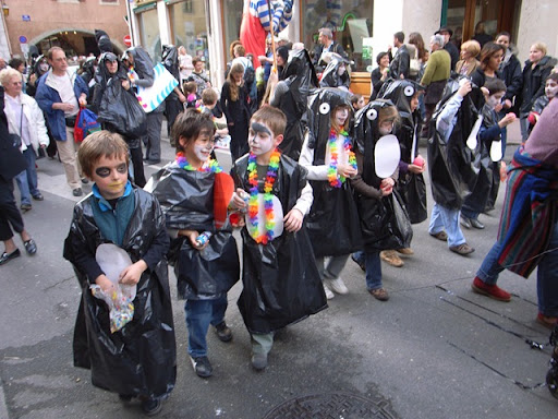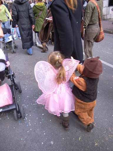 路上有很多小朋友和家長穿著不同款式的衣服,